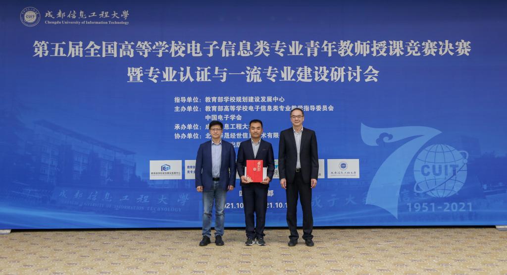 【本网讯】10月15日-17日,由教育部学校规划建设发展中心指导,教育部高等学校电子信息类专业教学指导委员会、中国电子学会主办,成都信息工程大学承办,北京华晟经世信息技术有限公司、高等教育出版社协办的第五届全国高等学校电子信息类专业青年教师授课竞赛决赛暨专业认证与一流专业建设研讨会在我校航空港校区成功举办。