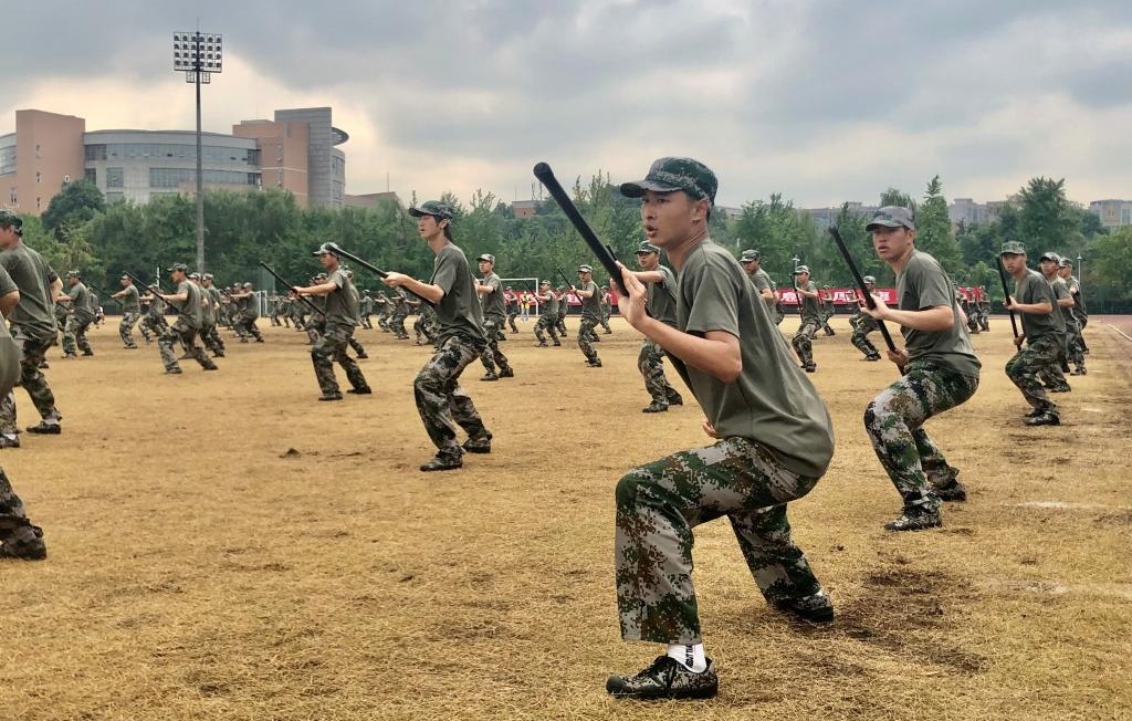 汇报表演伴随着《分列式进行曲》拉开帷幕。标兵就位,带领着分列式方阵迈着矫健的步伐,喊着嘹亮的口号经过检阅台,同学们沉着、自信的精神面貌赢得了现场师生的阵阵掌声;军体拳方队声如猛虎,势如蛟龙,从他们的口号中感受到了青春的激情飞扬;匕首操方队的迅猛刺激、身姿挺拔,彰显着军营之花的英姿飒爽和青春魅力;刚劲有力的擒敌拳,是学子们热情勇毅与追求卓越的印证;铿锵有力的应急棍,表现了学子们不畏困苦的英勇气魄;战术表演方队用“五角星”“党徽”“100”“70”等字样的队形,表达成信学子对党和祖国的热爱以及对学校70周年校庆的祝福;红歌联唱更是唱出了成信学子的一片赤诚之心。同学们步伐整齐、热情饱满、斗志昂扬,展现了成信学子锐意进取、追求卓越的精神风貌。