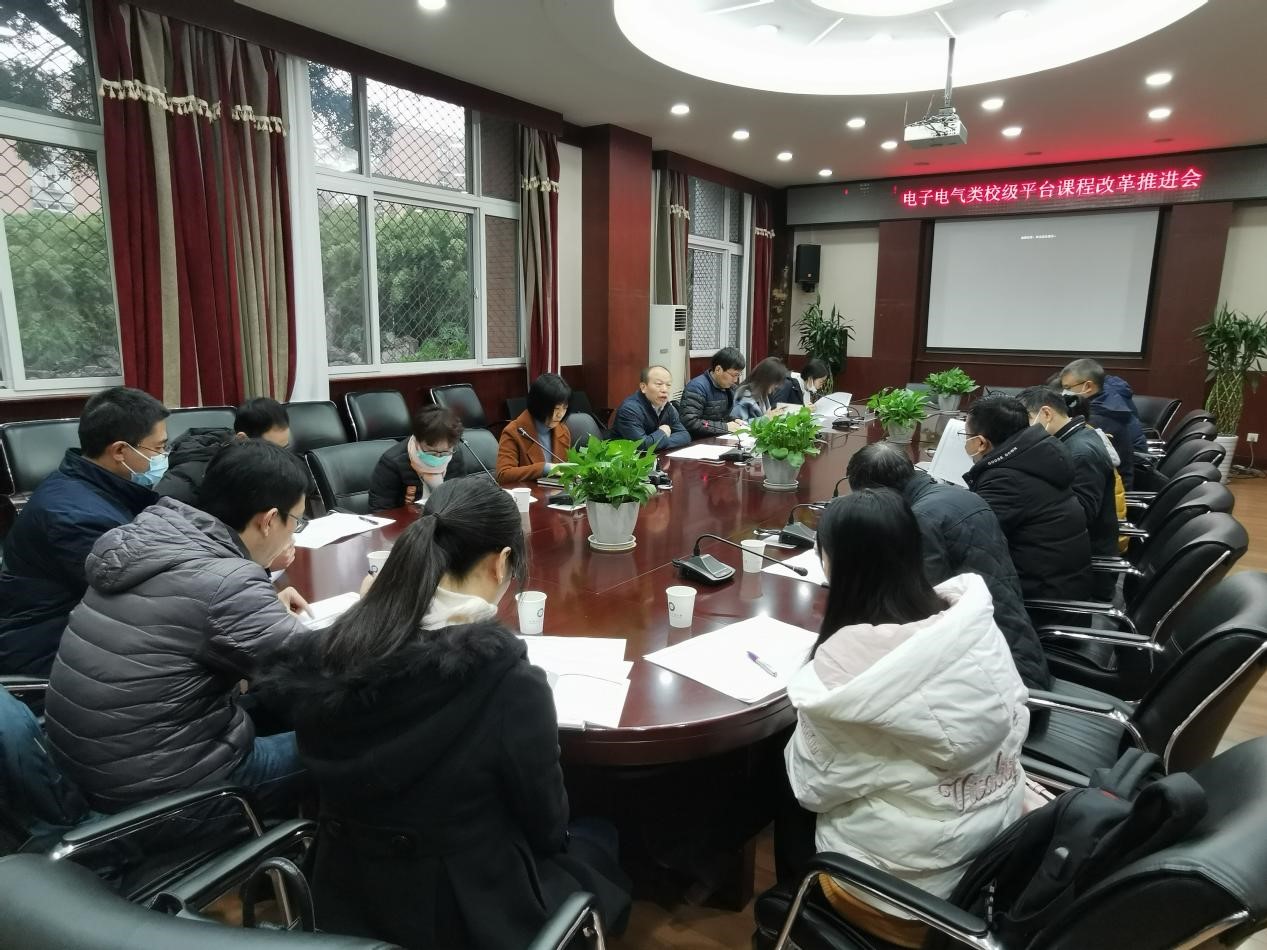 【本网讯】12月14日上午,学校在航空港校区六会议室召开电子电气类校级平台课程改革推进会。学校副校长何建新,教务处处长方睿、副处长彭静,工程实践中心、电子工程学院、控制工程学院、通信工程学院、光电工程学院主管教学副院长及相关专业负责人,部分平台课程负责人参加会议。会议由方睿主持。
