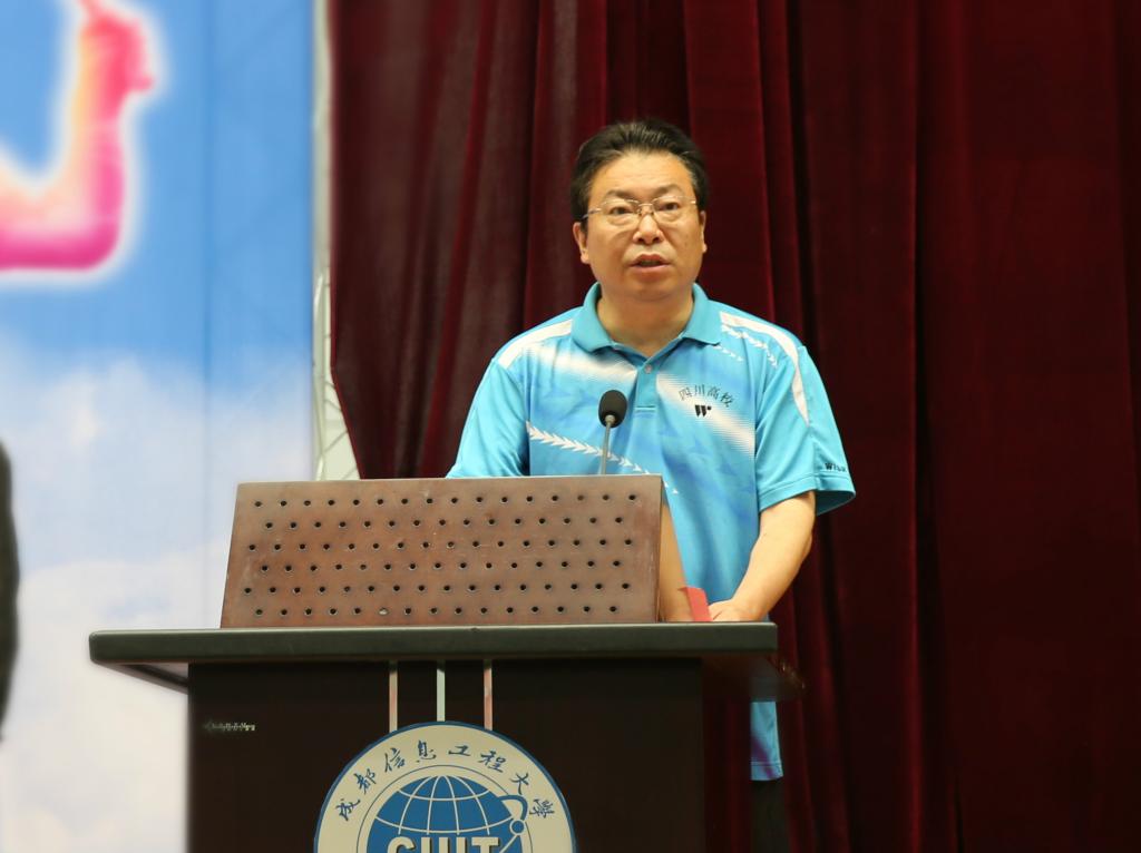 本次比赛由四川省教育厅主办,四川省学生体育艺术协会、四川省高等教育学会体育研究分会、成都市高校体育协会协办,我校承办。四川省教育厅体卫艺处副处长苗建平,四川省高等教育学会体育研究分会理事长邓跃宁、秘书长文烨,学校党委书记周激流、副校长于世祥参加开幕式。开幕式由于世祥主持。