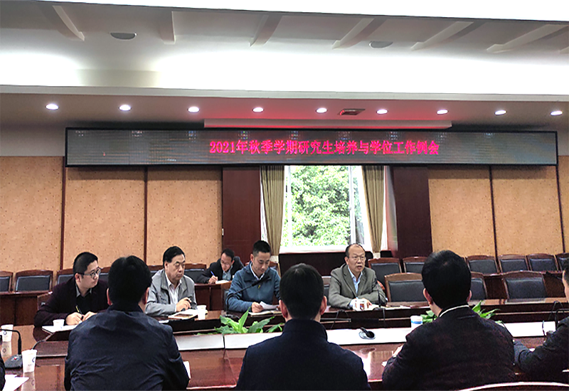 [本网讯]11月3日上午,学校2021年秋季学期研究生培养与学位工作例会在第七会议室组织召开,就本学期研究生培养和学位工作进行前期总结和后期部署。学校副校长何建新,各主管研究生院长(分管副院长)、教学秘书,研究生处负责人及相关工作人员参会。会议由何建新主持。
