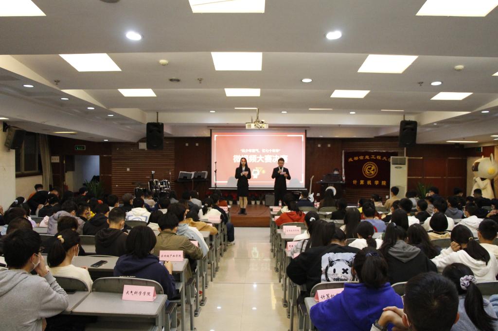 【本网讯】为庆祝我校建校70周年,进一步发挥大学生运用影像传播的方式,在践行社会主义核心价值观、传播成信大优秀校园风气、营造良好学习氛围等方面的积极作用,10月31日晚,由我校70周年校庆工作办公室主办,学生工作处、计算机学院承办的“纵少年意气,忆七十年华”微视频大赛决赛在航空港校区学术报告厅举办。