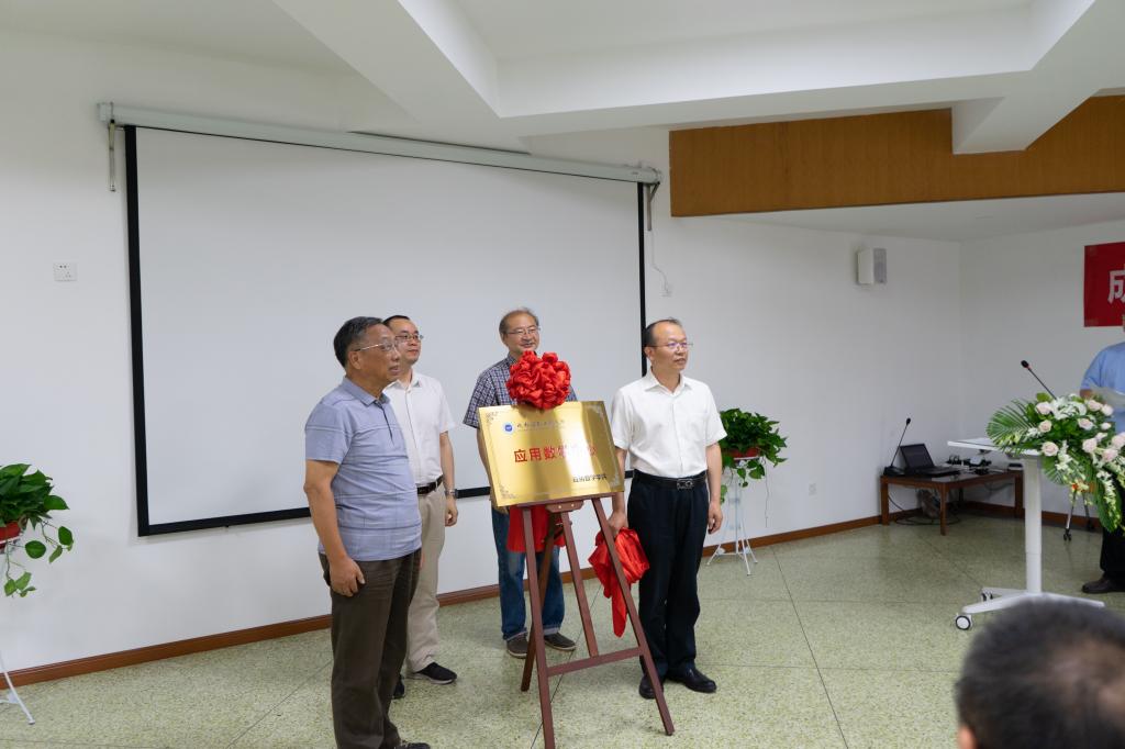 在与会人员共同见证下,何建新、李继彬共同为成都信息工程大学应用数学中心揭牌。