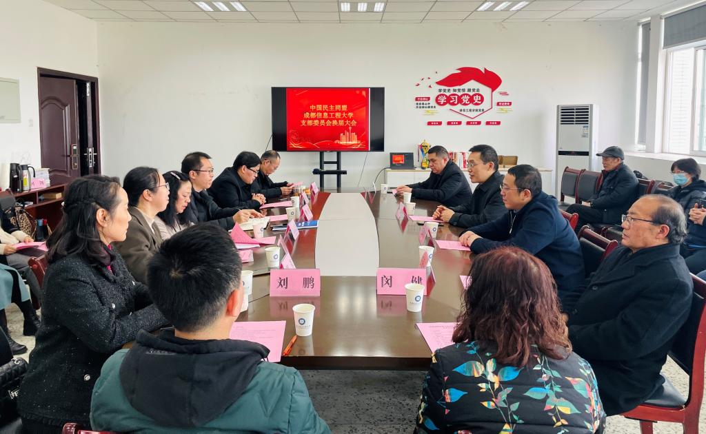 【本网讯】12月24日下午,中国民主同盟成都信息工程大学支部换届大会成功举行。民盟成都市委会专职副主委何立新、组织处处长毛明实、组织处副处长王国旺,学校党委常委、组织部、党委统战部部长熊建和副部长孔晋红以及学校各民主党派、知联会负责人莅临大会,民盟成信大支部全体会员参会。