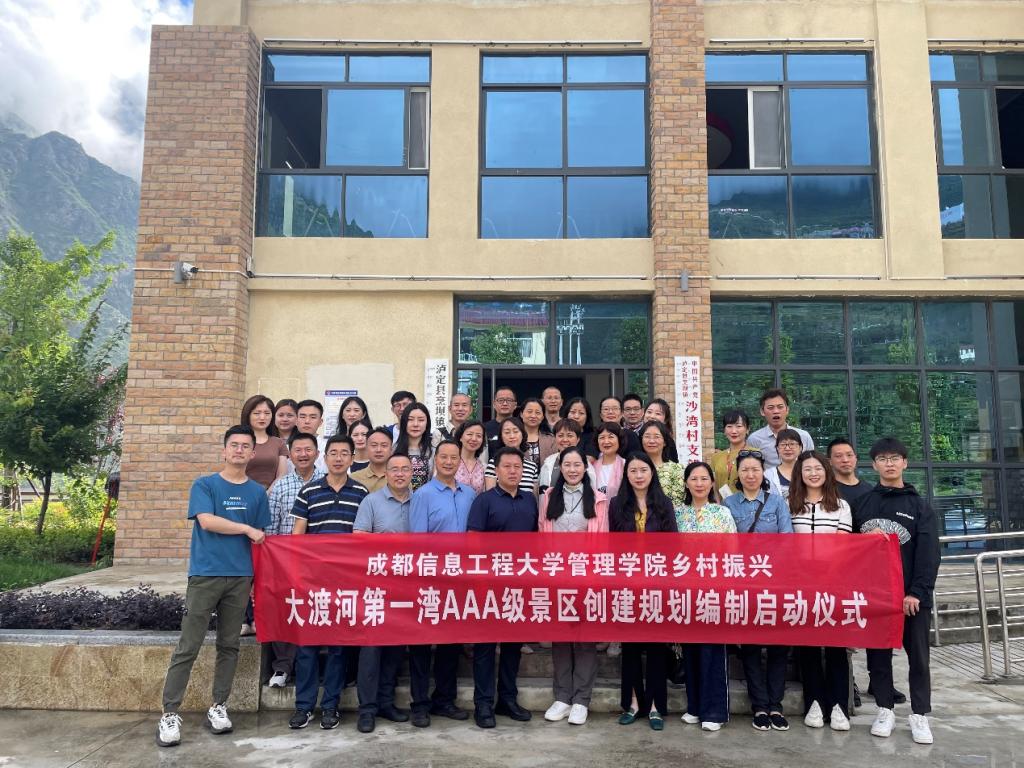 由成都信息工程大学主办,成都信息工程大学管理学院承办,沙湾村党委协办的“大渡河第一湾AAA级景区创建规划编制”项目启动仪式在泸定县沙湾村村委会举行。政府负责人、我院相关单位负责人以及学生党员代表参加了启动仪式。