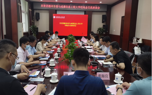 【本网讯】6月9日上午,共青团德州市委与成都信息工程大学校地企交流座谈会在我校航空港校区行政楼第六会议室举行。学校党委副书记马洪江,团德州市委书记、市青联主席张方瑞,以及双方相关负责人参加了交流座谈会。交流座谈会由校团委书记丁恒康主持。
